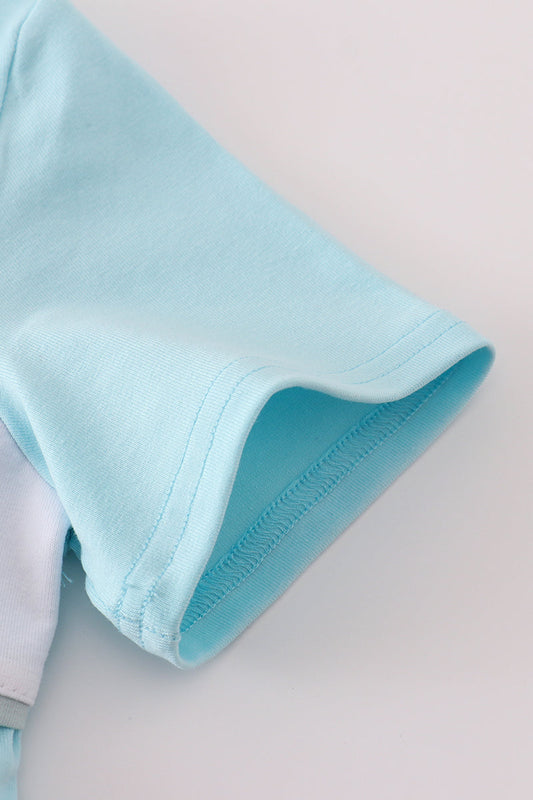 Blue bow print ruffle shorts set